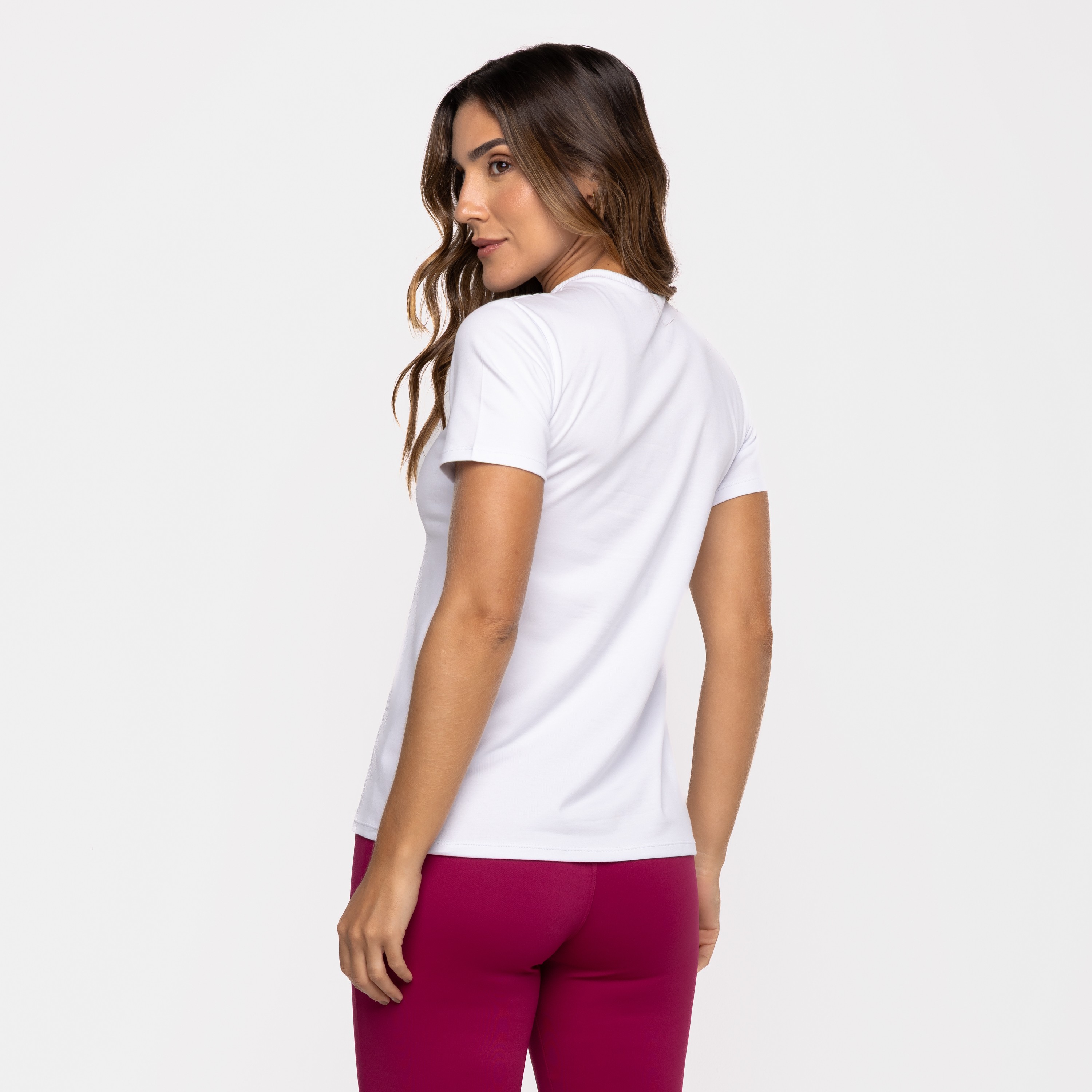 Blusa Cropped Raglan Poliamida Manga Curta Branca