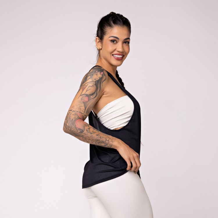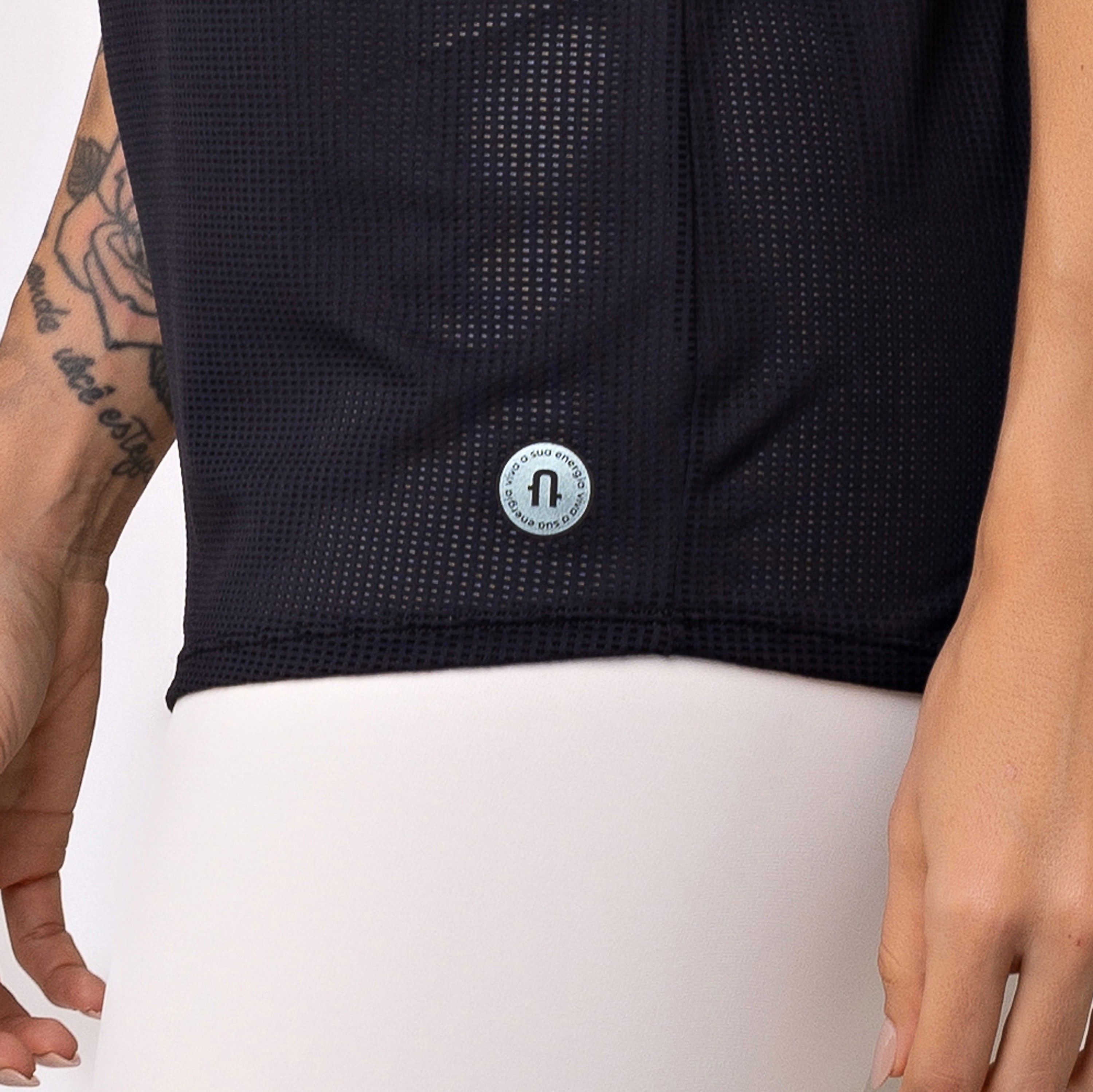 Respirável, com secagem rápida, mantém a temperatura estável do corpo durante o treino.